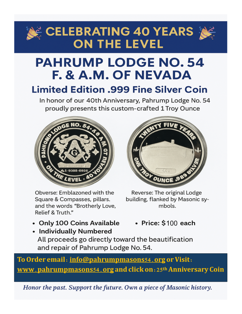 Pahrump Lodge No. 54. - Chartered 1985 A.D. 5985 A.L.